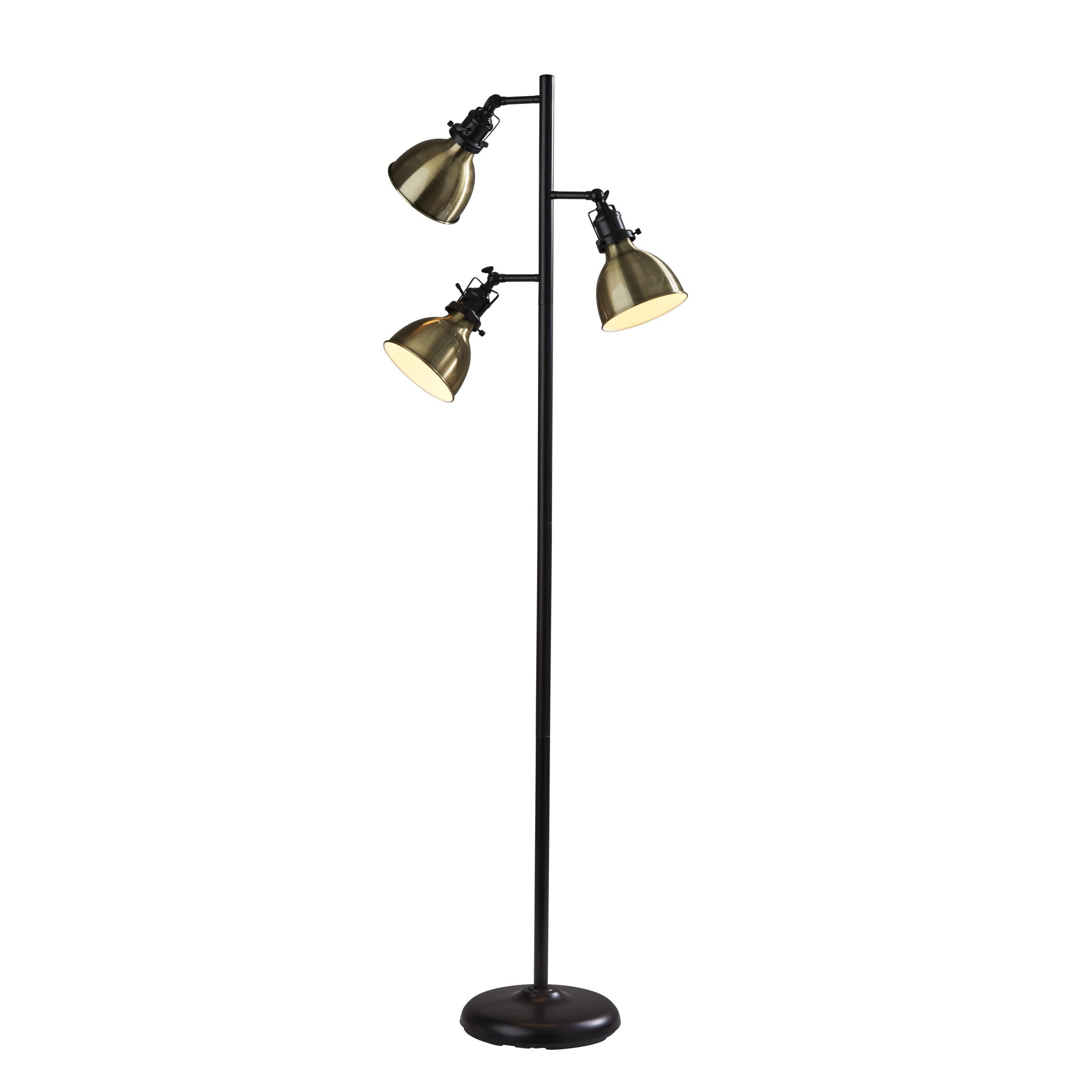 An essential floor lamp for any space, this 64.75” floor lamp brings vintage industrial character to your bedroom or living area with its metal construction and two-tone dark bronze and antique brass finish. Three task schoolhouse style shades with decorative adjustable joints allow you direct the light at the right angle for the job at hand. A convenient switch located on the pole turns the lamp on and off.Read More