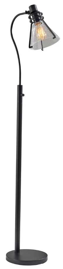 Complete your space's look with the coordinating Beckett desk lamp, wall lamp, and pendant lighting. The metal shade frame in black finish consists of three arms that secure an inverted cone-shaped shade of clear, seeded glass. For a distinctive vintage look, the 5.5" high and 7.25" diameter clear shade leaves the included 60W Edison bulb visible. For adjustable lighting, the lamp has an articulation point at the base of the shade, allowing you to direct the light wherever it's needed. Operated by a rotary switch located on the stem to easily turn it on or off, the floor lamp also features a 78" black cord.