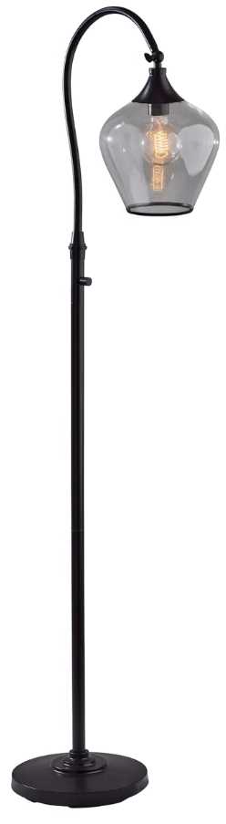 The 59"tall lamp features a 10.5" diameter round base and curved stand with a dark bronze finish, and a matching metal rim accenting the glass shade, making it the perfect solution to provide lighting and vintage décor to any space. Completing the vintage look is an included 40W Edison bulb. For versatile lighting options, the base of the shade is adjustable, allowing you to pivot the shade up or down to direct the light wherever it's needed. Operated by a rotary switch on the stand to easily turn it on or off, the Bradford floor lamp also features a 5' clear cord. Complete your space's look with the coordinating Bradford pendant lighting, wall lamp, and desk lamp.