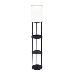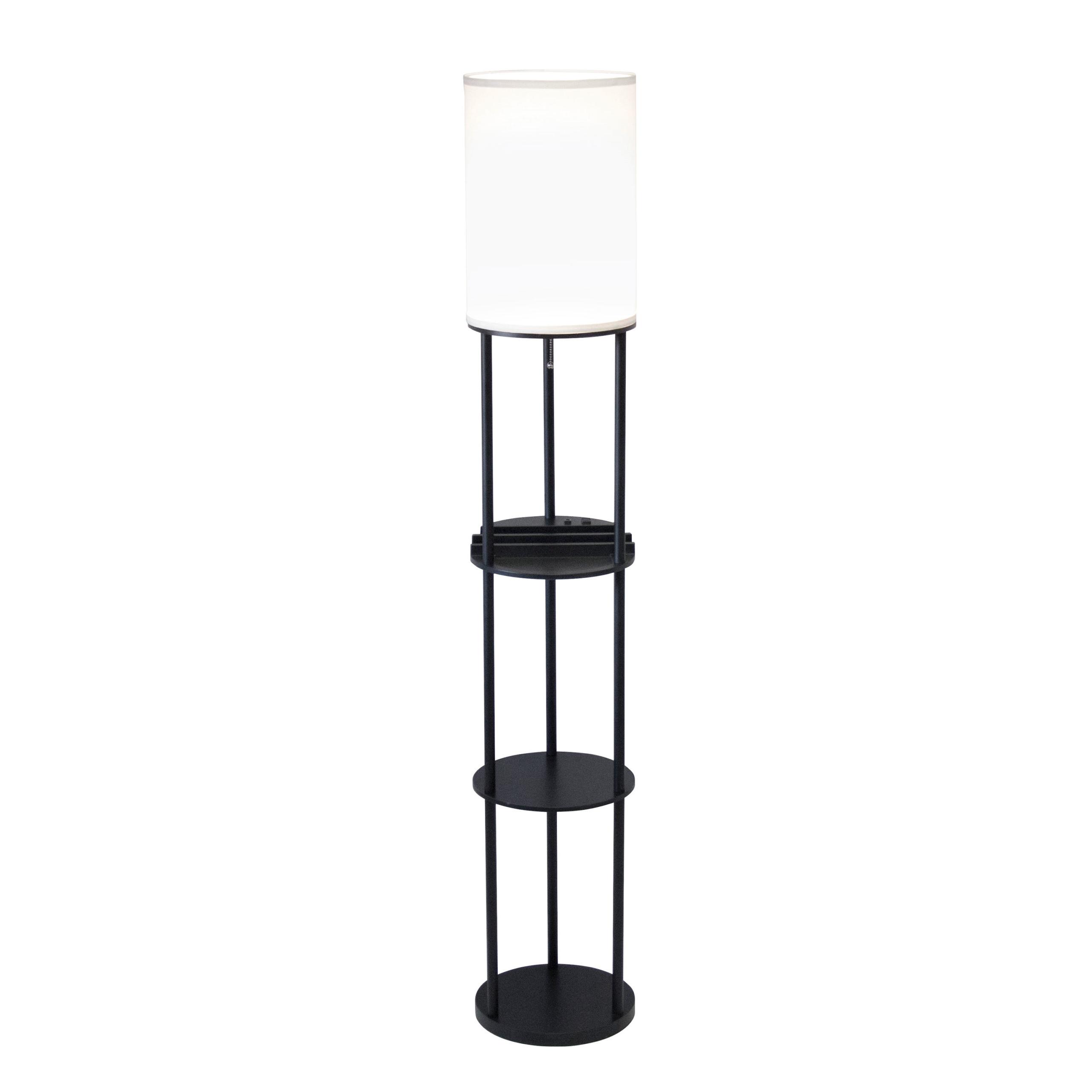 The Charging Station Floor Lamp provides the ultimate resource for function and design. The lamp is comprised of 3 round shelves, with the top shelf forming a charging station for all smart devices with 2 device slots, a catch-all tray, 1 USB outlet and 1 AC outlet. A black finish with a clean white fabric shade offers a simple, elegant style to fit into all types of home decor. A pull chain switch turns the lamp on and off. This lamp has a black cord and is smart outlet compatible. Bulb is not included.Read More