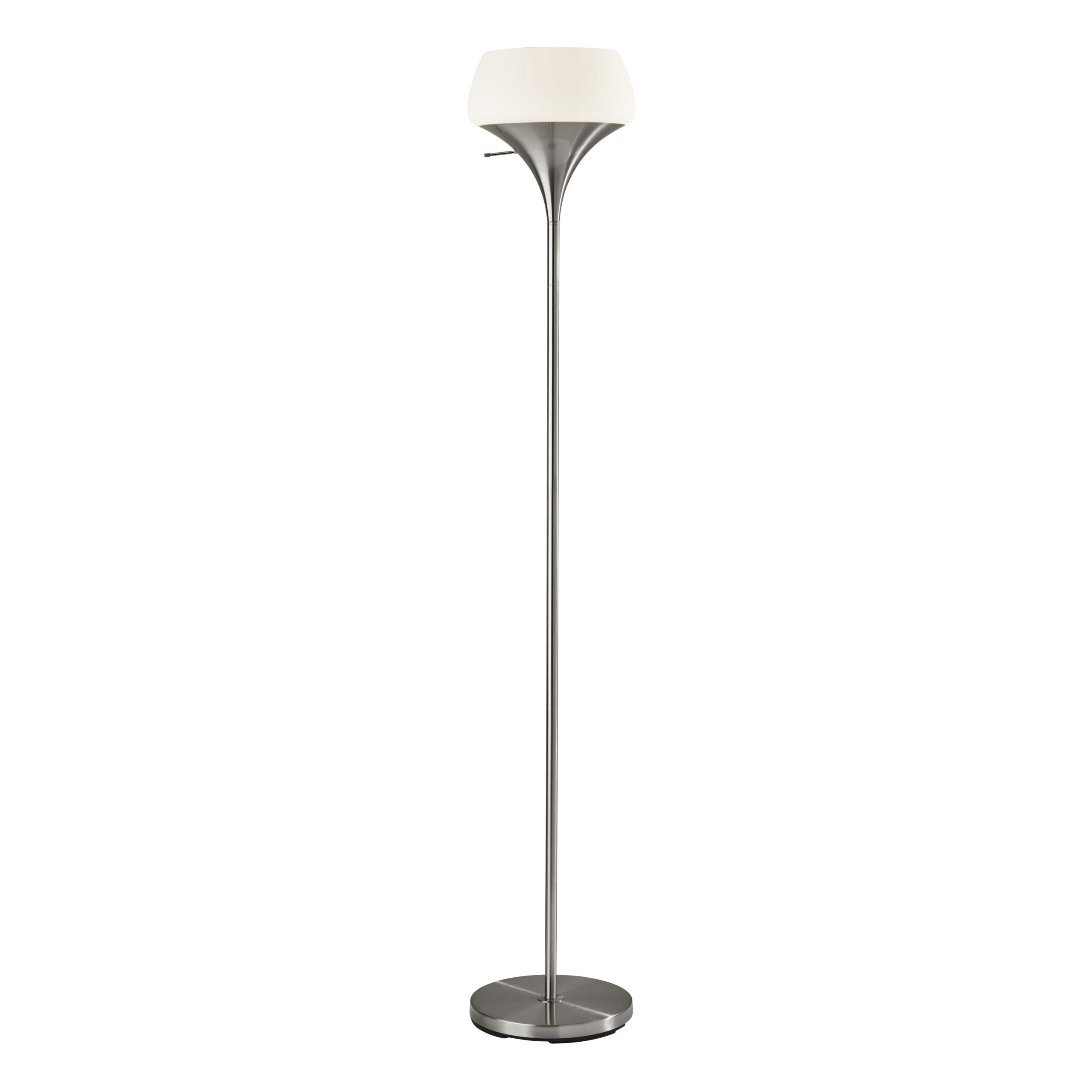 The Eliza Torchiere is sure to stand out in your home whether it is turned on or off. The options are endless with this chic, classy style. Brushed steel metal is mixed with a white frosted glass shade. A convenient 3-way rotary switch is located on the shade cup. The 3-way rotary socket switch will only work with a 3-way light bulb, otherwise this lamp will function with simple on/off switch at its highest setting All Adesso lighting product is either UL or ETL listed, meaning that it has been tested and approved to meet the government-regulated safety standards for the USA.Read More