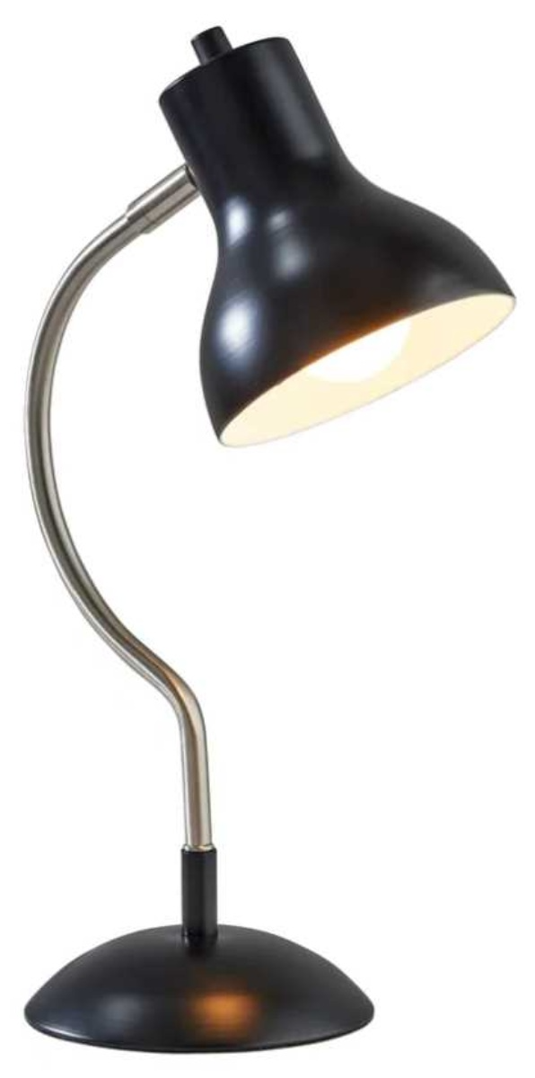 The mid-century modern Elmhurt desk lamp by Simplee Adesso is a study of coordinating curves and style lines in black and brushed steel finish. The dome-shaped metal base in black finish is the perfect complement to the bell-shaped black shade.Read More