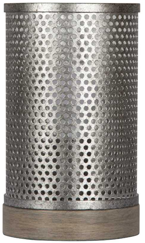 Illuminate your living space with this beautiful and unique Industrial Table Lantern. This decorative lamp is the perfect addition to your living room, study or bedroom, providing an extra light source wherever and whenever you need it most. A rustic wood-finished base is paired with a perforated, aged metal shade.Read More