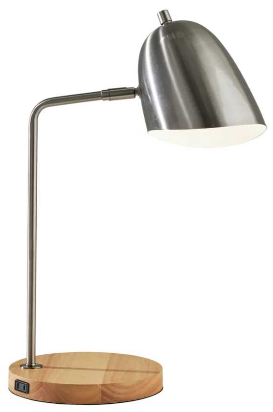 Taking its cue from mid-century modern and industrial designs, the Jude desk lamp by Simplee Adesso is the perfect addition to your home or office. The round 8" diameter base is constructed of rubberwood with a natural finish that beautifully complements the brushed steel finish on the metal stem and curved bell-shaped shade.Read More