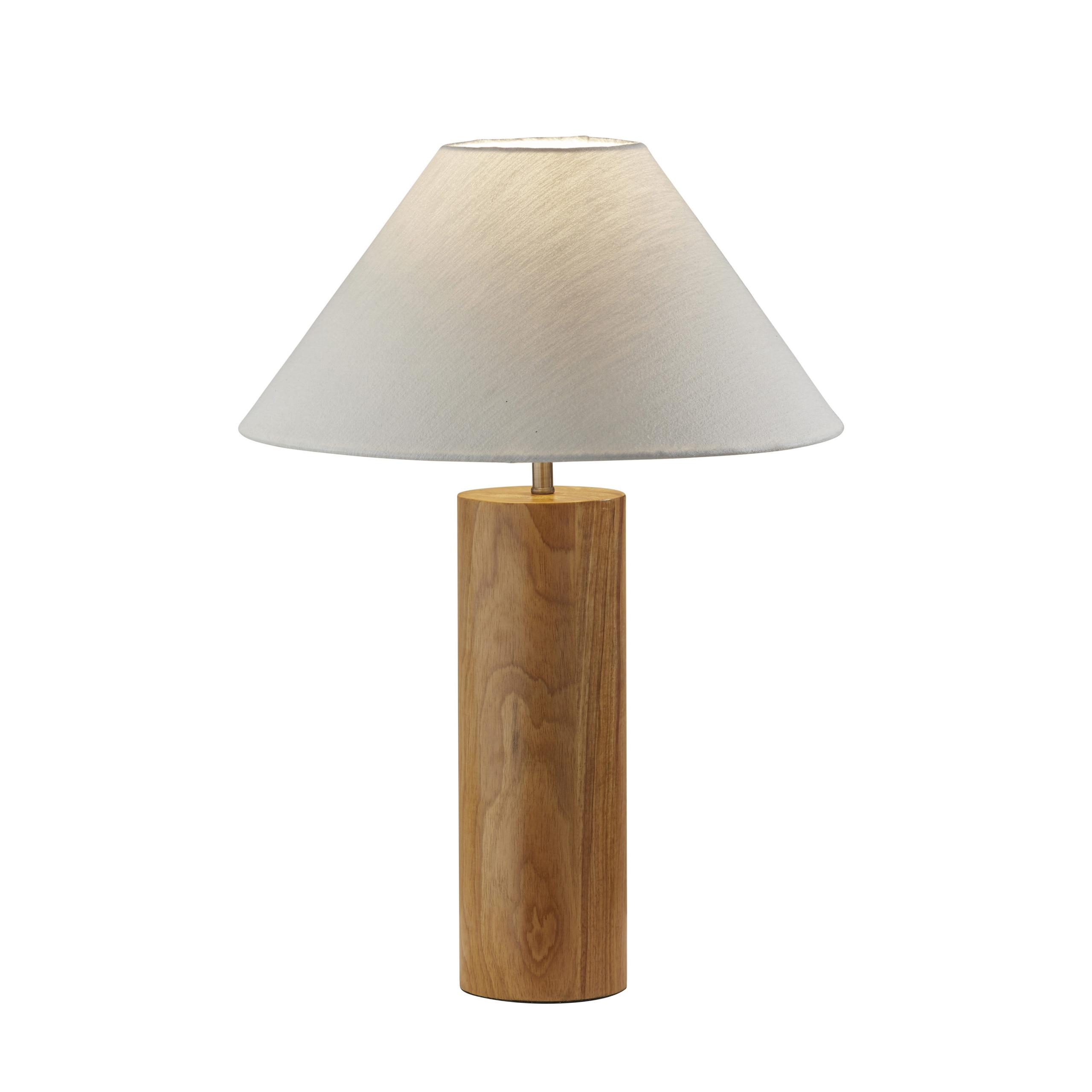 Spruce up your living space or bedroom with the Martin Table Lamp. Crafted of natural oak wood with a touch of antique brass metal, this lamp will add a classy touch of modern styling to your home. A retro inspired shade shape is comprised of white textured fabric. Turn the lamp on and off with a convenient switch on the socket. All Adesso lighting product is either UL or ETL listed, meaning that it has been tested and approved to meet the government-regulated safety standards for the USA. Bulb is not included.Read More