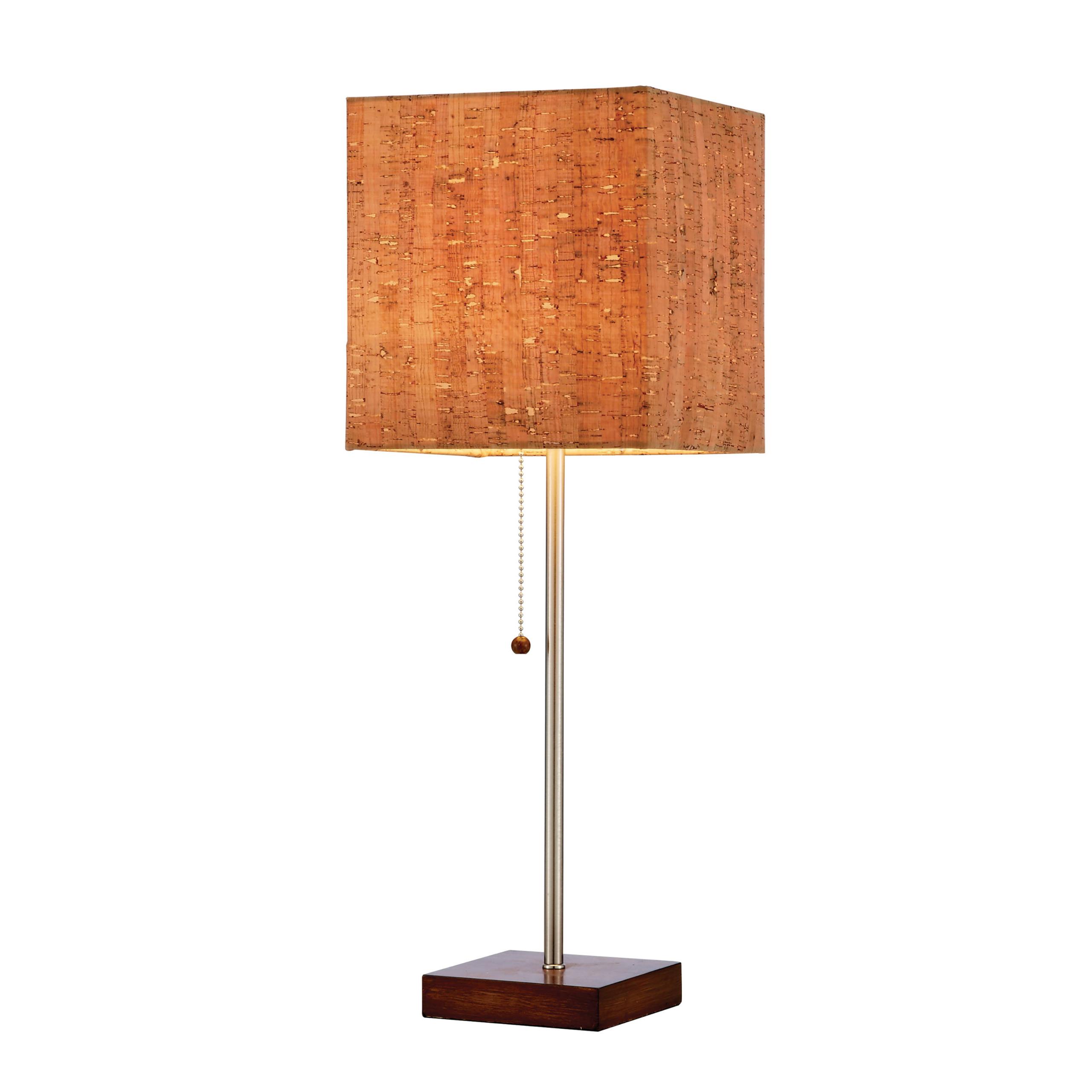 Introduce a natural look to your dŽcor with the Sedona table lamp. The square cork shade has a PVC lining that produces a warm even glow when illuminated. A square wooden base provides support for the brushed steel stick pole body. This lamp has a black cord and is smart outlet compatible. Bulb is not included.Read More