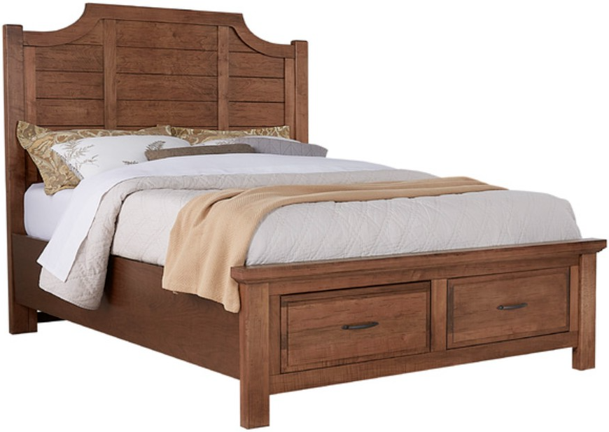 Scalloped top headboard featuring horizonal planks paired with a storage footboard. Footboard storage drawer features English dovetail construction with an ultra-smooth acrylic finish with piston activated whisper soft close guide system backed with a lifetime warranty.Read More