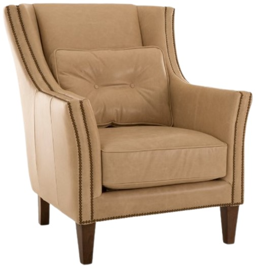 A chair built for comfort and style. Beautifully detailed with double row nail studs applied to the arm facing and along the bottom band of the chair. Lumbar pillow with hand button tufting adds to the comfort of this chair. Easily fits into a traditional or transitional lifestyle.Read More