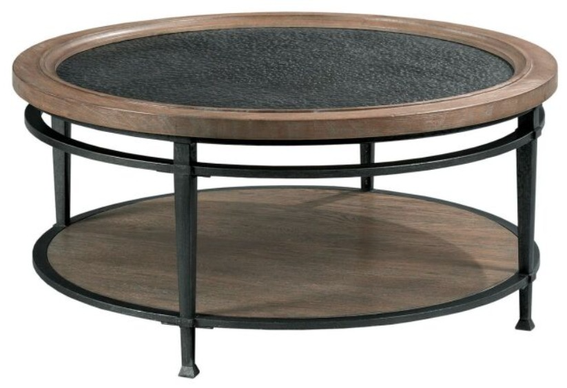 Austin is crafted of flat-cut white oak veneers, finished in a hand-applied glazed and antiqued medium brown. A casual transitional look with wood rim that steps down to hand hammered metal inset top. The hammered bronze apron rails and legs taper down to the decorative foot.Read More
