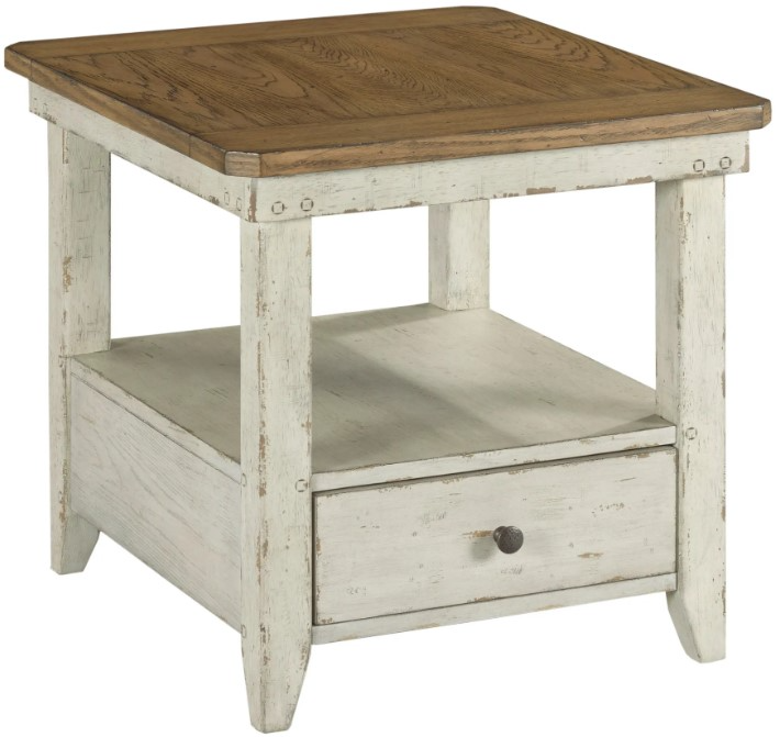 This rectangular end table features a medium brown top with a chalk white base, combining classic warmth with modern style. Its practical surface offers room for everyday essentials, while sturdy construction ensures durability, making it a versatile and stylish addition to living rooms or seating areas.Read More