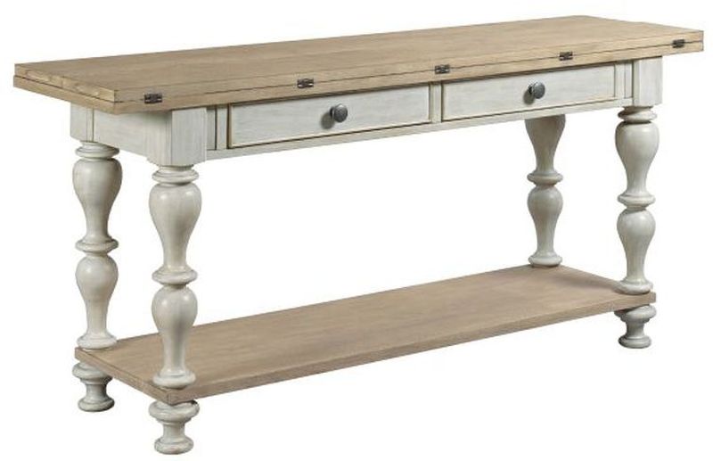 Thick oak veneer, select hardwoods, metal accents, and natural cane in a basket weave pattern inspired the Litchfield collection with sun washed tables with driftwood tops and accent pieces in blue.Read More