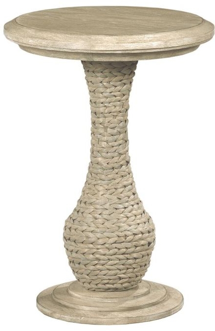 Casual transitional group by utilizing transitional styling with casual elements and accent pieces. Round end table with a woven seagrass pedestal and wooden base adds a different element to the group.Read More