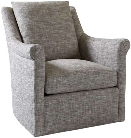 This swivel chair gives an updated feel to traditional styling. The delicate hand-pleated detail on its small-scale rolled arms brings elegant sophistication to the design. Coupled with crisp tailoring on all sides and a durable spring-down cushion, the comfort and styling are sure to impress all of your guests.Read More
