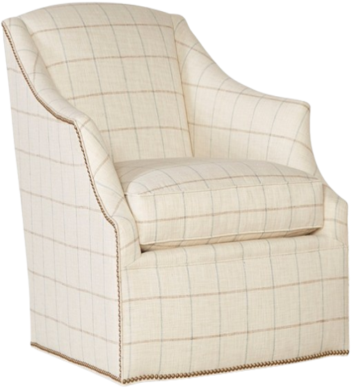 Available with nail heads and as a swivel glider chair