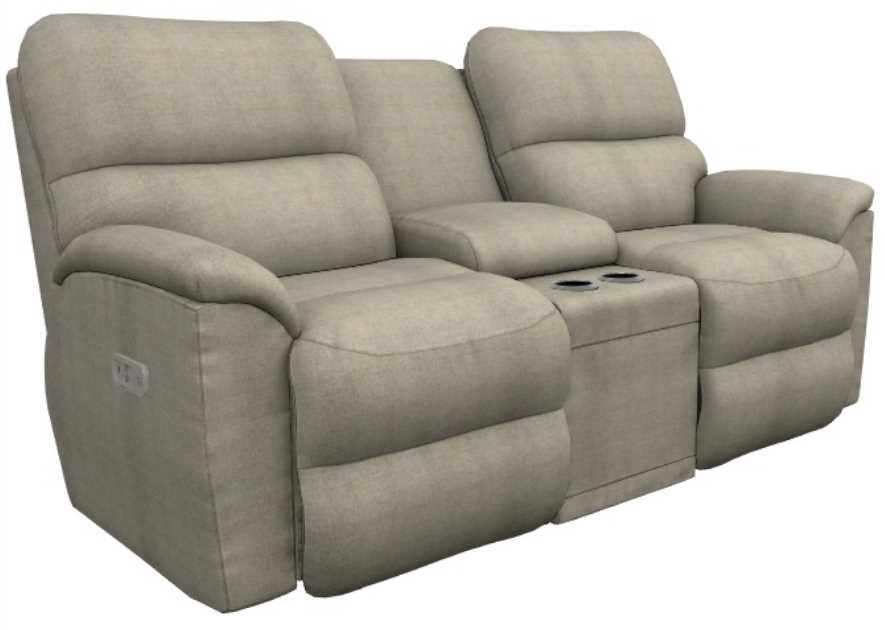 The Brooks Power Reclining loveseat with headrest and console blends cool casual style and utility. Tapered arms accent cushy backs and chaise seats with head-to-toe customizable comfort. The center console keeps drinks, remotes and devices nearby.Read More
