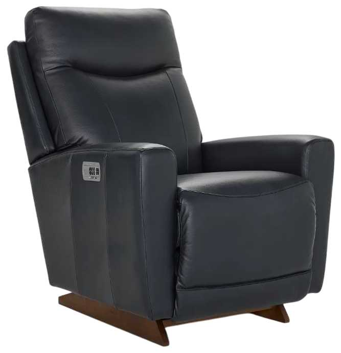 The roomy yet streamlined Kodie Power Rocking Recliner with Headrest and Lumbar brings sophisticated style to a deep chaise seat, tapered track arms and tall, cozy back. Easily adjust headrest, lumbar and countless positions…or just rock and relax!Read More