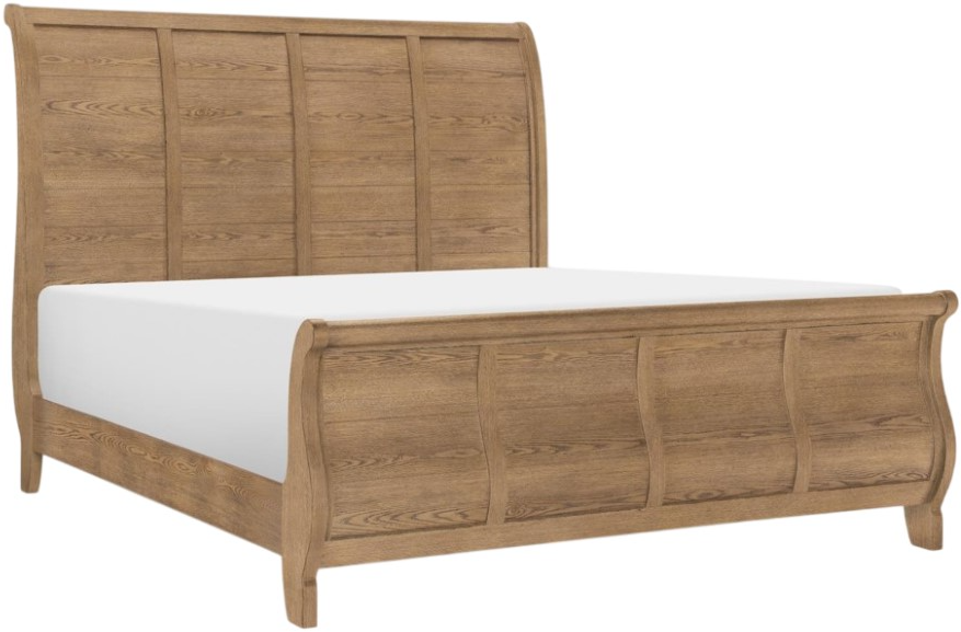 Experience warm elegance and timeless character with the Vintage Market bed. This striking piece from the Vintage Market Collection blends classic sleigh-bed form with aged finishes for an inviting, rustic-touch centerpiece in your bedroom.Read More