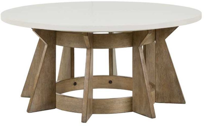 The Berkley Square Round Cocktail Table brings a fresh take on contemporary design with its clean lines and eye-catching silhouette. Crafted of Rubberwood solids and MDF in a soft Linen and Khaki finish, this table features a smooth round top paired with a unique fan-style pedestal base that adds sculptural interest.Read More