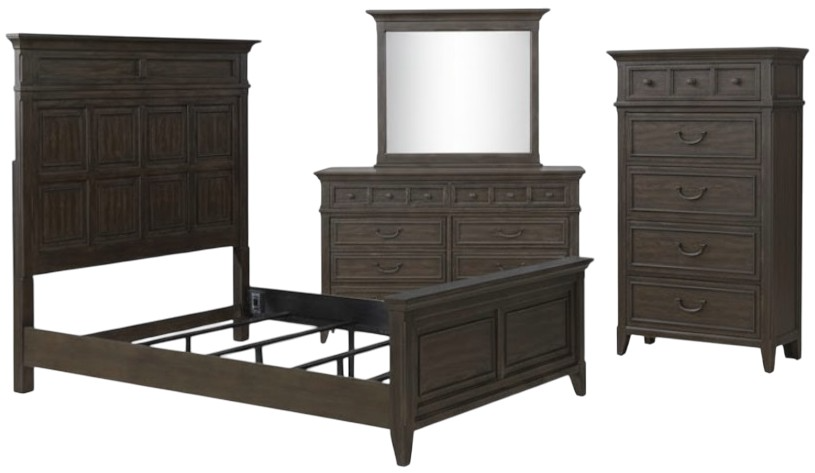 Built for beauty, strength, and durability, the Paradise Valley queen panel bed, dresser, mirror, and chest was designed to last throughout the years and delight generations to come. Crafted with excellence using rubberwood solids and split heart white oak veneers, this bed features a saddle brown finish.Read More