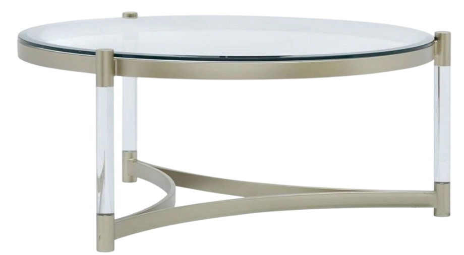 Magnussen® Home cocktail table featuring a platinum finish and acrylic legs.Read More