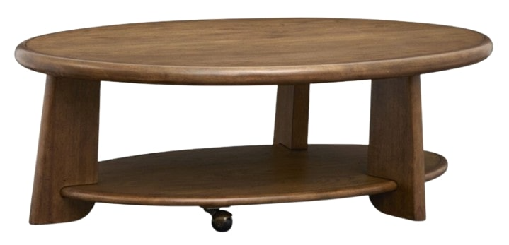 The Tanner Oval Cocktail Table brings warmth, style, and functionality to your living room. Finished in a rich tawny brown, this table features a smooth wood top and a fixed bottom wood shelf for extra storage or display.Read More