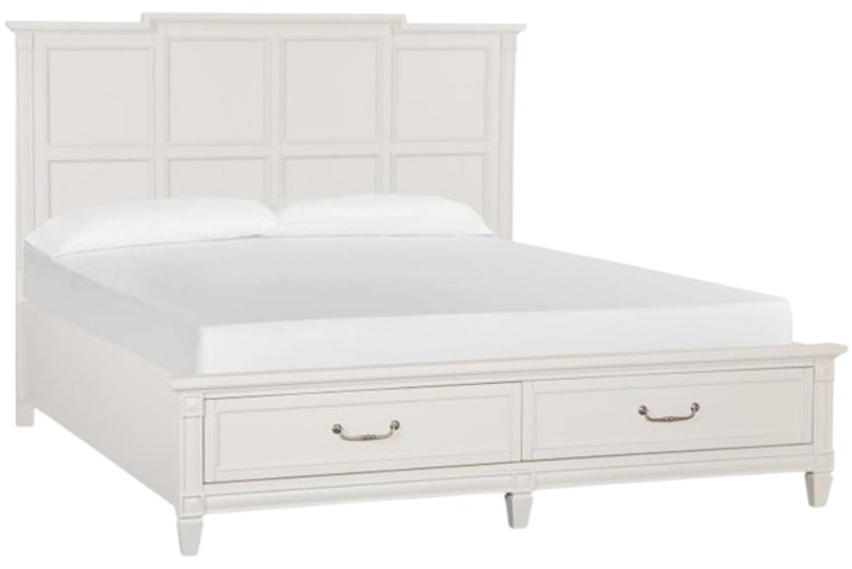 Charming and chic, Willowbrook combines a soft and casual egg shell white finish with classic forms to create a soothing atmosphere that relaxes mind and body. Create a serene setting with vintage silhouettes featuring breakfront shaping on the dresser, panel headboard and mirror, and tarnished silver hardware including a decorated knob and elegant bail pull.Read More