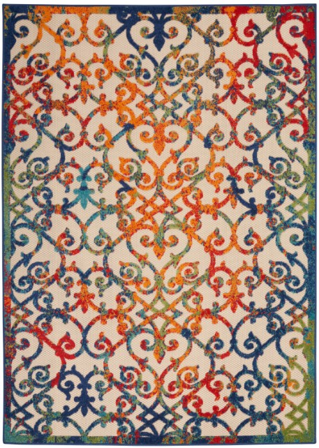 Bring a relaxed vibe to your living room or porch, balcony with this Aloha Indoor and Outdoor Collection area rug. Its surface is adorned with a richly multicolor quatrefoil pattern. Contemporary floral indoor or outdoor rug complements a variety of modern decor stylesRead More