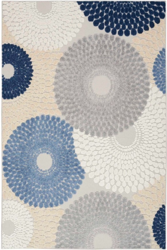 Liven up your space with the bold geometric design of this outdoor rug from the Aloha collection. Presented in grey, ivory, and blue, the overlapping circular tear drop pattern is enhanced by a soft, raised texture that stands out against its flatwoven ground.Read More