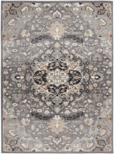 Create a welcoming environment in your living room, bedroom, dining room, or home office with this Elation Collection area rug. A Persian-inspired floral medallion multi-tonal grey and beige hues add a soft and elegant vibe to boho chic, farmhouse, and contemporary decor.Read More