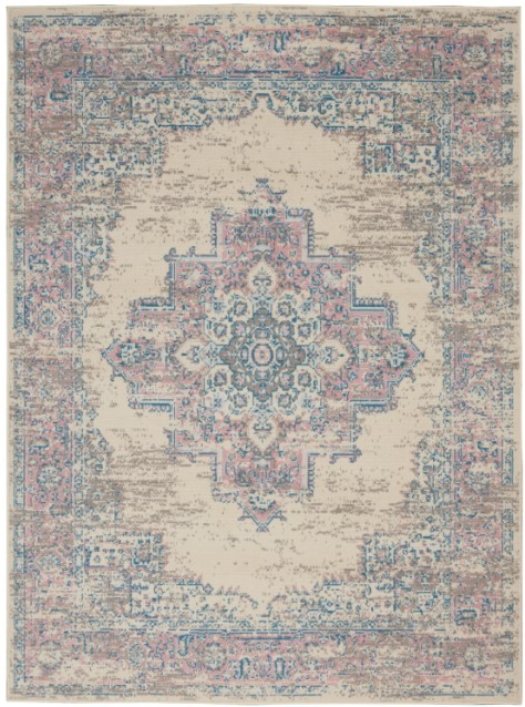 In soothing shades of blue and ivory with subtle pink accents, this brilliantly bordered, central medallion Grafix area rug from Nourison will elevate the elegance quotient of any room. Masterfully power loomed from silky and ultra-hardy polypropylene for a lavish feel, long wear, and low maintenance.Read More