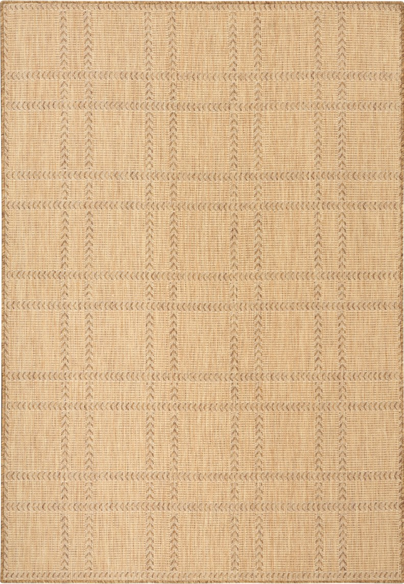 Refresh your living room or patio with this natural beige geometric outdoor rug from the Horizon collection. A series of arrowheads form a structured grid on a tonal stripe background that adds a sophisticated feel to your space. Woven from a blend of polyester and polypropylene for fuss-free care.Read More