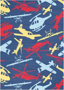 Ignite your childs sense of adventure with this dynamic kids airplane-themed rug from the Imagination collection. The vibrantly printed pattern features planes and helicopters on a dark blue sky, which is complete with a non-skid backing for added safety during everyday play.Read More