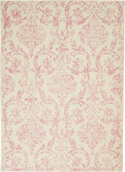 Dramatically distressed color effects and ornate European damask designs bring a vintage antique vibe to this Jubilant Collection area rug. Striated pink patterns on an ivory white field bring an authentic elegance to your favorite room, with a sleek low pile of easy-care fibers.Read More
