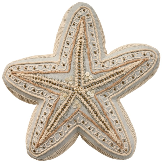 This starfish-shaped decorative pillow from Mina Victory Home Accents delivers a charming coastal vibe to your favorite seating area. Tactile embellishments including braided jute, buttons, beads, and twisted rope add a unique pop of dimension to any beachy or nautical style room. Cover made from 100% cotton.Read More