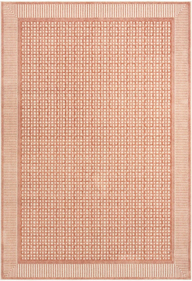 Bring simple yet sophisticated style to your dcor with this brick red and ivory geometric rug from the Nordic Collection. The tile-like pattern, framed by a linear double border, helps frame your furniture with ease. This modern rug has a silky sheen and high-low dimensional pile for added movement and depth.Read More