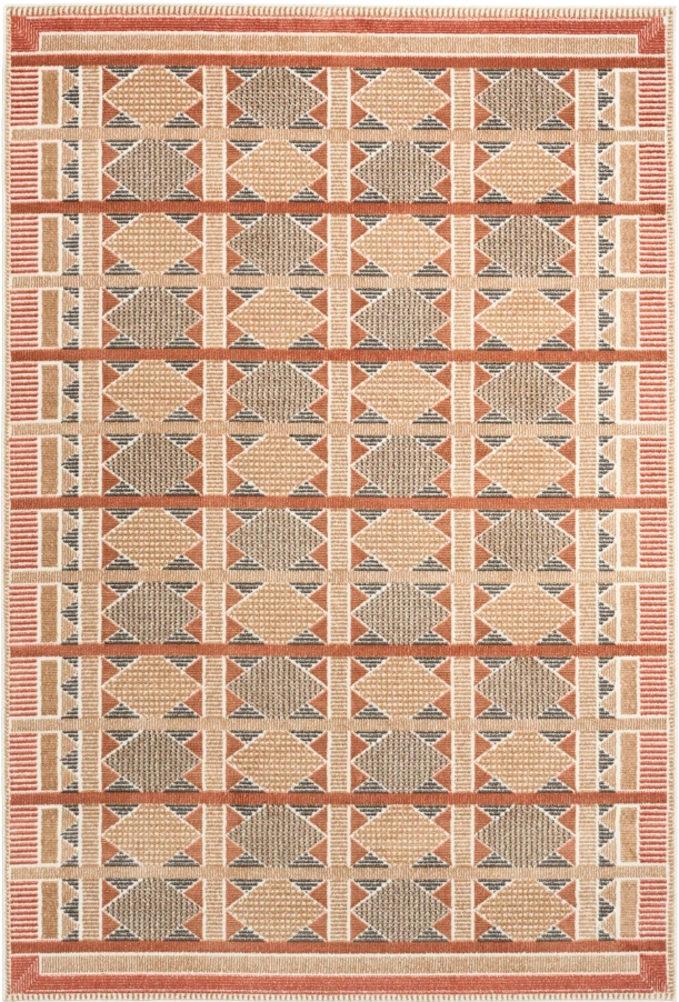 Invite a sense of calm to your dcor with this rust, blue, and tan geometric rug from the Nordic collection. The Scandinavian-inspired diamond pattern emphasizes symmetry and simplicity, bringing a clean and balanced look into your surroundings. This modern rug is enhanced by a subtle shimmer and high-low pile for added movement and dimension.Read More