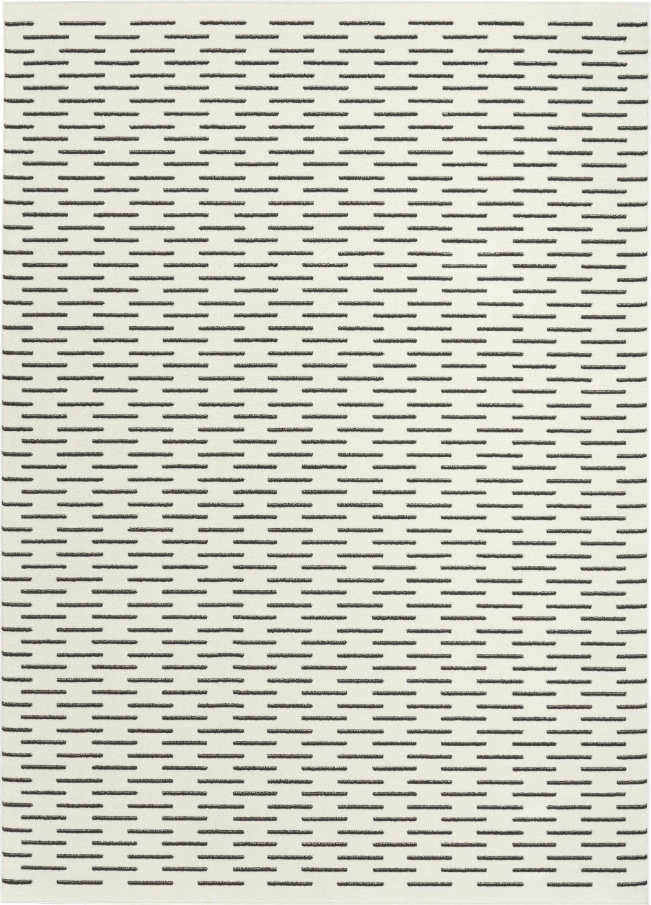 Bring balance to your space with this black and white minimalist rug from the Nordic collection. The dashed pattern invites a clean and sophisticated look, which is enhanced by a subtle high-low pile that adds a touch of dimension. This modern rug is made from polyester and is finished with a silky sheen.Read More