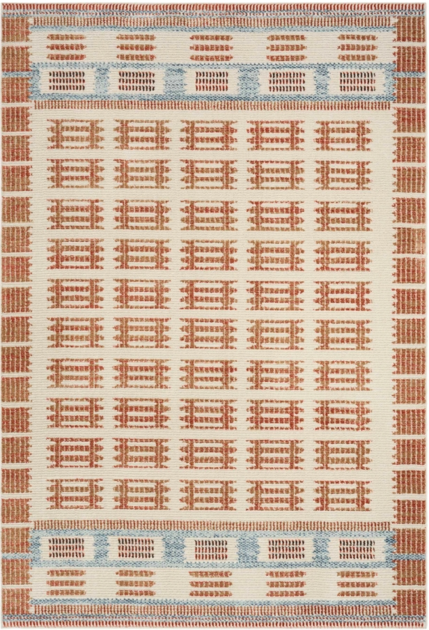 Cozy with a touch of modern, this Scandinavian-inspired rust, blue, and ivory rug from the Nordic Collection infuses an artistic feel into your space. The accordion-like pattern and unique decorative border create an intriguing focal point, enhanced by a subtle sheen and high-low ribbed pile for added dimension.Read More