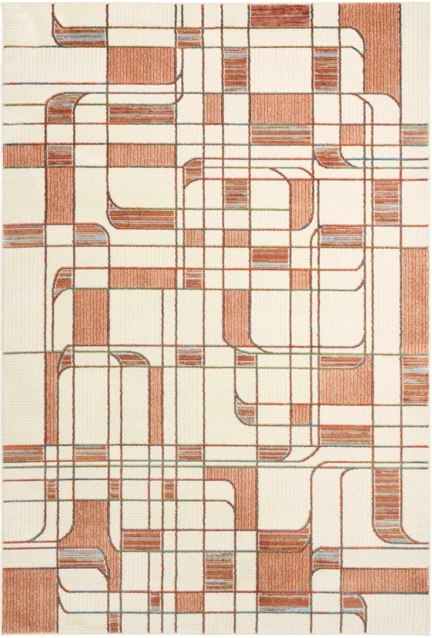 Bring dynamic energy to your home with this retro-style rust, blue, and ivory abstract rug from the Nordic Collection. The curvy pattern evokes a nostalgic feel, complemented by a ribbed high-low texture that adds a cozy and welcoming vibe.Read More