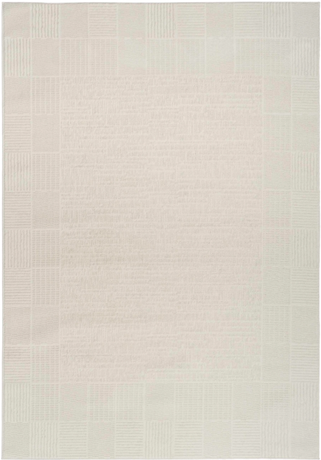 Refresh your living space with this ivory geometric rug from the Nordic collection. The checkerboard-style border and softly textured surface fuse style with practicality, enhanced by a subtle sheen and high-low pile for added depth. This modern rug is designed for everyday living with a low-profile construction that lays flat quickly and is easy to clean.Read More