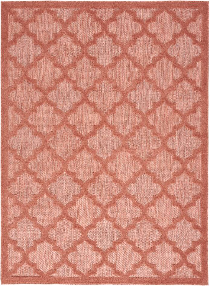 Ground your indoor or outdoor seating area in the stylish appeal of this indoor/outdoor rug from the Easy Care Collection. With a multi-toned coral backdrop that showcases multiple flatweave styles, enhanced by a raised Moroccan trellis pattern in dark coral, this contemporary rug adds an appealing sense of depth to your surroundings.Read More