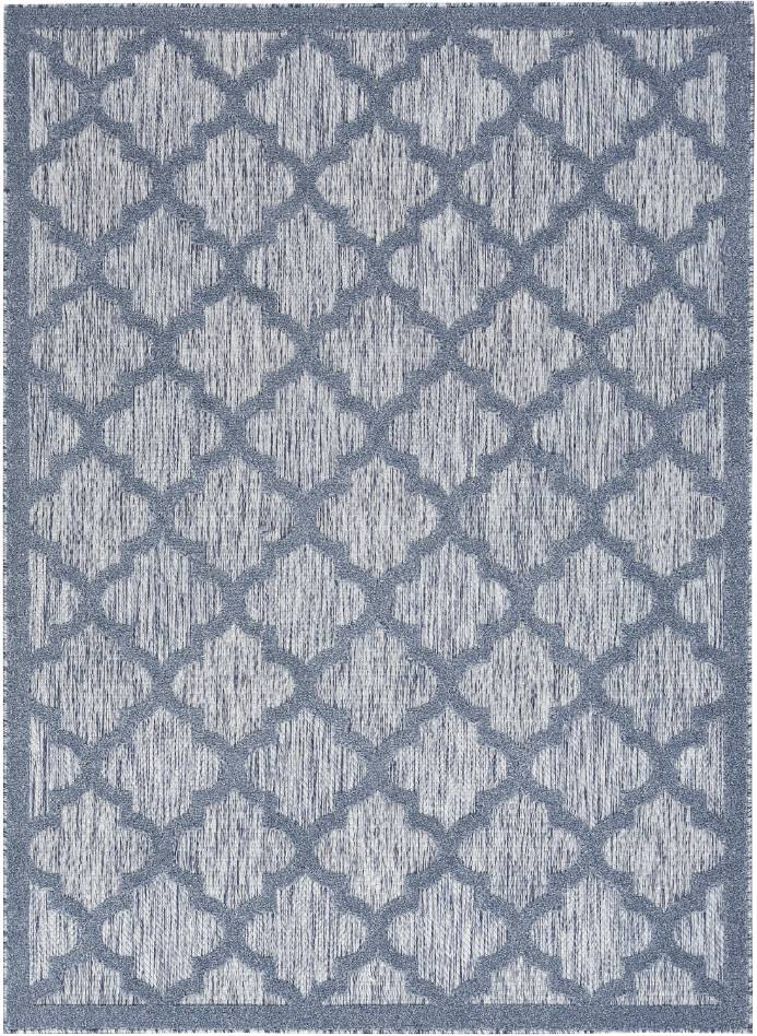 Ground your indoor or outdoor seating area in the stylish appeal of this indoor/outdoor rug from the Easy Care Collection. With a denim and white backdrop that showcases multiple flatweave styles, enhanced by a raised Moroccan trellis pattern in denim blue, this contemporary rug adds an appealing sense of depth to your surroundings.Read More