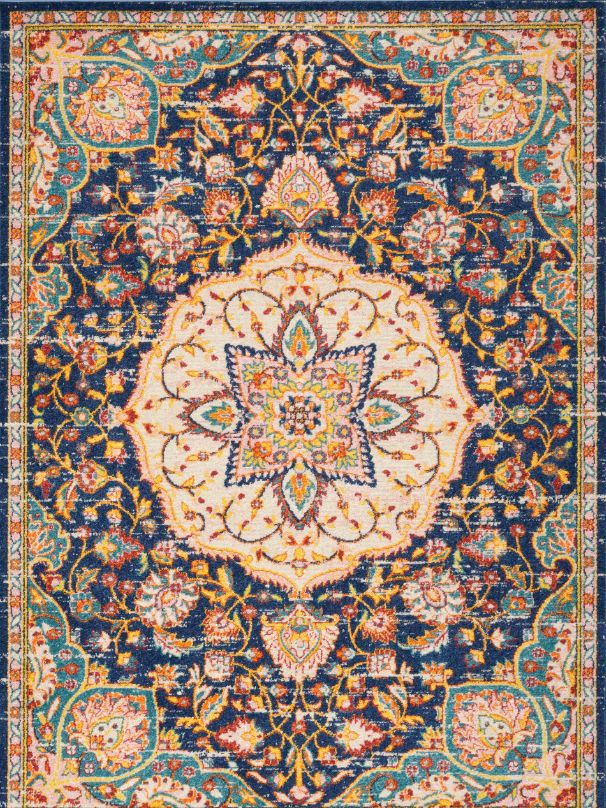 Enliven your room with this brilliant Persian rug from the Passion Collection. The design features a classic floral pattern in shades of grey, blue, and ivory, with a subtly faded effect that brings a vintage touch. This transitional rug is machine-made from softRead More