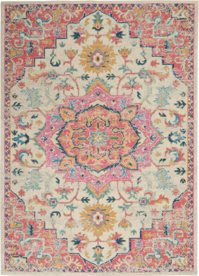 Classic persian rug pattern with contemporary colors brings boho flair to your home