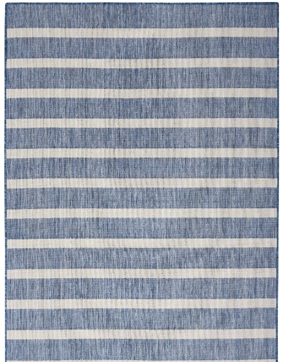 Striped outdoor rug adds coastal flair to any room