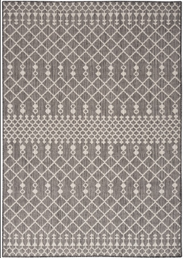 Bring boho style with a touch of modern flair to your space with this charcoal grey outdoor rug from the Positano Collection. The classic Moroccan trellis pattern is woven onto a multi-toned blue ground that offers intriguing visual contrast.Read More