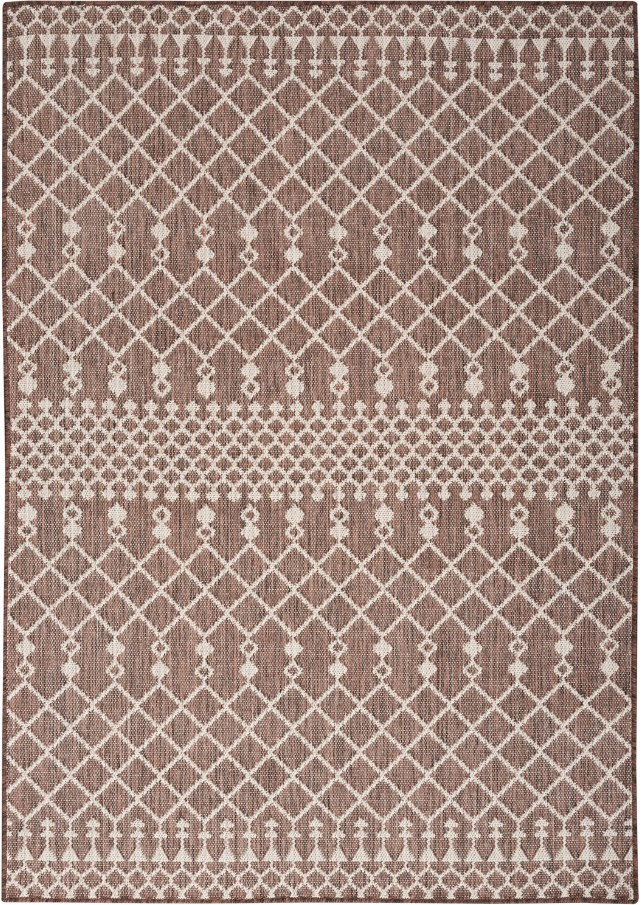 Bring boho style with a touch of modern flair to your space with this natural brown outdoor rug from the Positano Collection. The classic Moroccan trellis pattern is woven onto a multi-toned blue ground that offers intriguing visual contrast.Read More