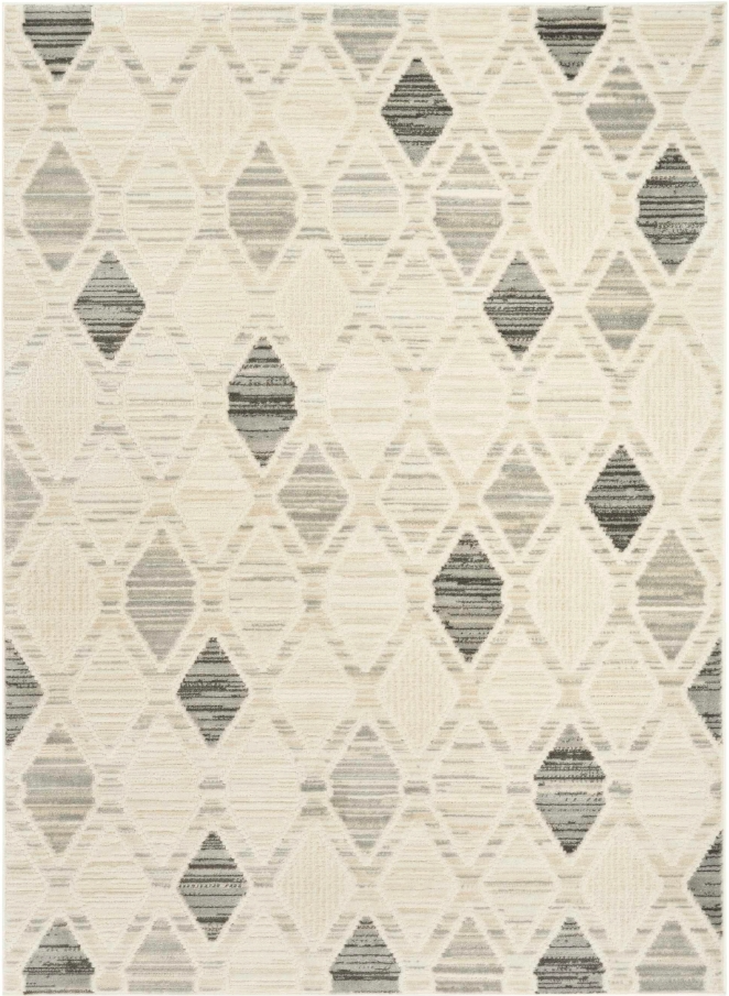 Add an instant touch of sophistication to any space with this beige and grey geometric rug from the Serenity Home collection. The classic trellis pattern takes on a refined feel through the decorative knot-style points and paneled color accents reminiscent of frosted glass.Read More