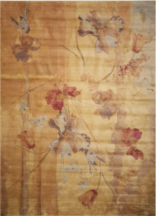 Impressionistic floral design on a brushstroke beige field