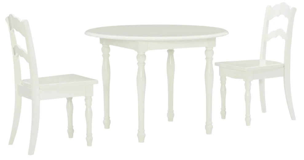 Create the perfect spot for your little one’s activities with this charming kids’ table and chair set. Designed for arts and crafts, tea parties, homework, and more, it blends classic style with everyday functionality. The round tabletop, scalloped ladderback chairs, and elegant turned legs bring timeless appeal, while the soft vanilla finish complements any decor.Read More